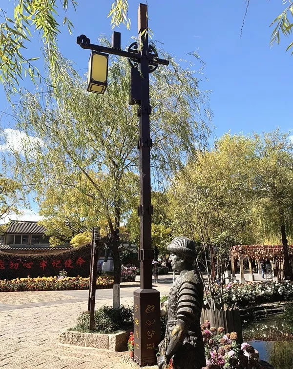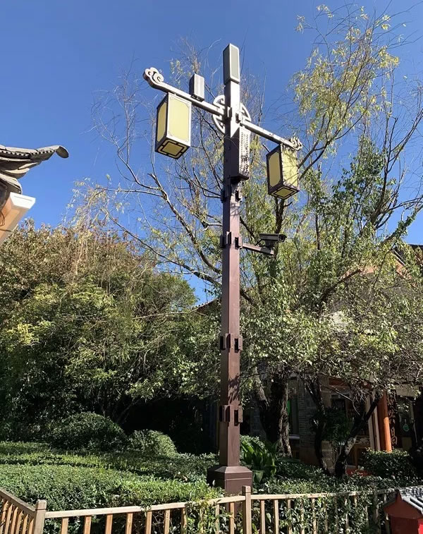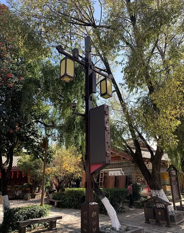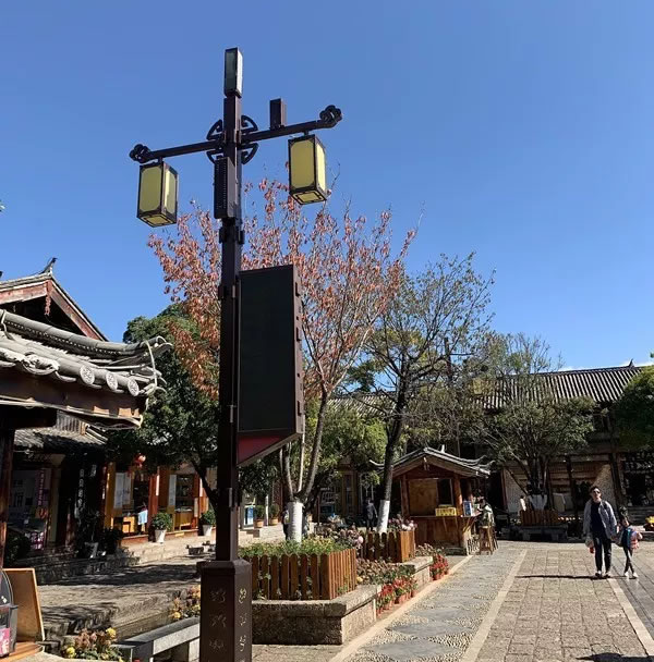束河古鎮是納西先民在麗江壩子中最早的聚居地之一,是茶馬古道上保存完好的重要集鎮,古鎮中保留著許多古民居。智慧燈杆的進入無疑給這樣的古鎮增添了一抹別樣的風情,給古鎮帶來了科技感,進駐的智慧燈杆既要考慮性能又要考慮與古鎮風格的整體劃一,既不破壞古鎮景致,又能錦上添花,中國風燈杆造型的誕生完美解決了這一難題。