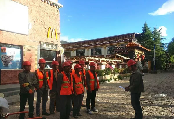 束河管道交叉複雜,且路麵是青石路麵,石塊大、邊緣呈不規則形態,開挖難度較大,采用電力開挖勢必對路麵造成無法修複的傷害。但人工開挖成本高,91黄色香蕉视频量大,施工困難。在經過反複試驗確定後全部改為人工開挖,開挖深度、寬度嚴格按照設計圖紙執行,力保安全第一。挖開的青石板由工人清理幹淨、按順序編號,施工時按照編號恢複原樣恢複,最大限度上減少了對古鎮地麵的破壞。
