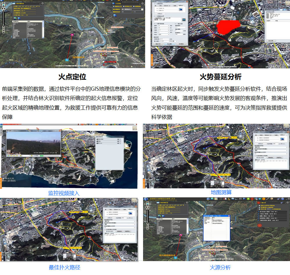 不僅可以獲得全麵的、清晰的、可錄製並回放的多畫麵現場實時圖像,還可以對前端攝像機焦距和雲台運動進行操作和控製,對於前端發生林火報警的監控點,通過雲台的實時角度回傳,結合GIS係統的經緯度數據可以實現火災發生點的精確定位;
